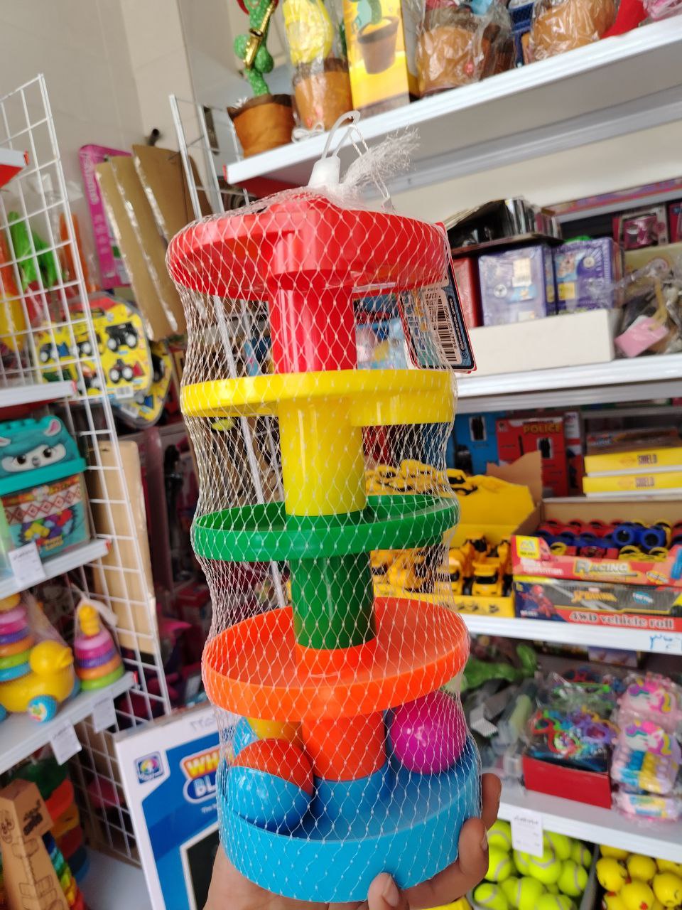 ✅ افزایش درک علت و معلول – مشاهدهی حرکت توپها به سمت پایین، درک کودک از مفاهیم فیزیکی مانند جاذبه و مسیر حرکت را تقویت میکند.